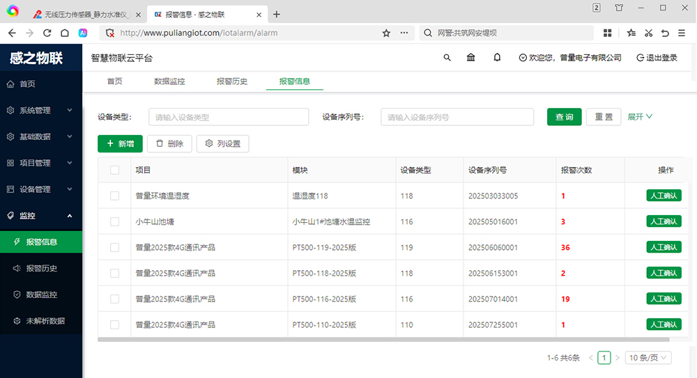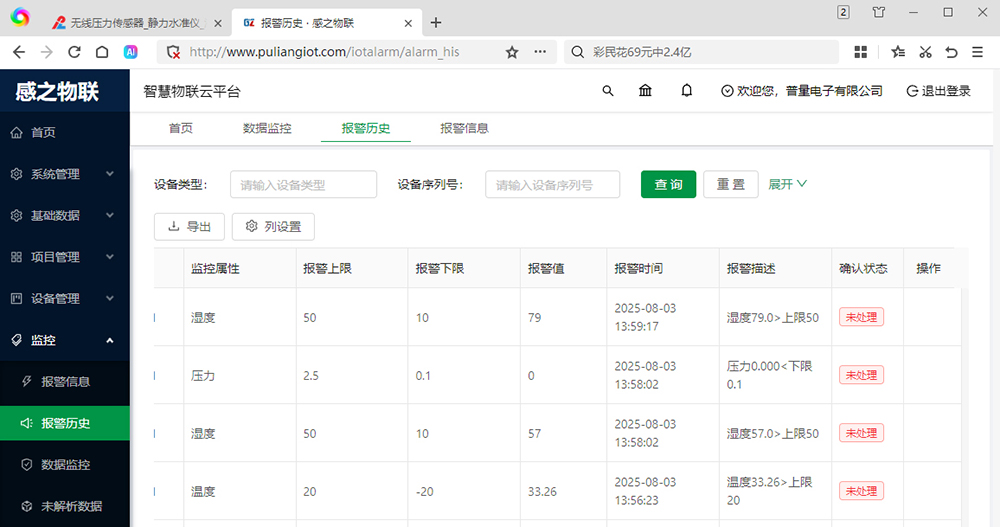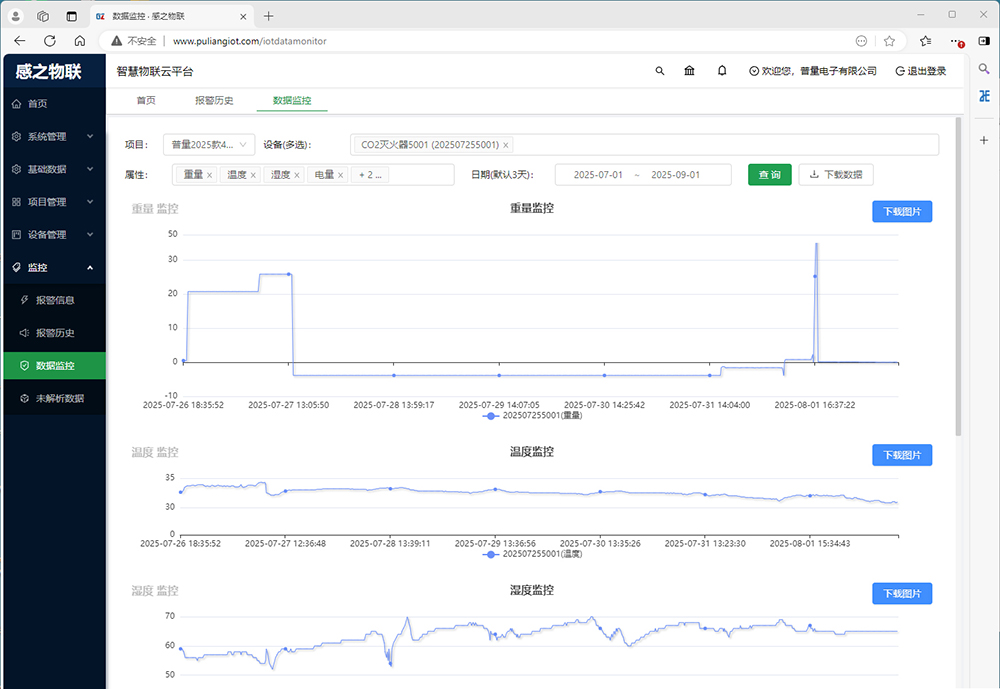 五、CO2 二氧化碳滅火器重量監(jiān)控儀 PT500-110 感之物聯(lián)云監(jiān)控平臺: